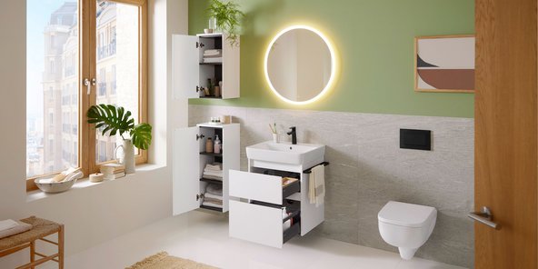 „Unsere modernisierten Badmöbel Renova Plan und Renova Compact sind für nahezu jede Bausituation geeignet“, erklärt Susanne Behm, Produktmanagerin Badezimmersysteme bei Geberit. „Unser Ziel war es, eine Lösung zu schaffen, die sowohl Endkunden als auch Profis überzeugt: ästhetisch, funktional und zu einem attraktiven Preis.“ Mit dem überarbeiteten Möbelsortiment bietet Geberit eine Badlösung, die Design, Komfort und einfache Handhabung vereint – zu einem Preis-Leistungs-Verhältnis, das sich für unterschiedliche Wohnkonzepte eignet: die erste eigene Wohnung, das Familienbad oder ganze Wohnbauprojekte.